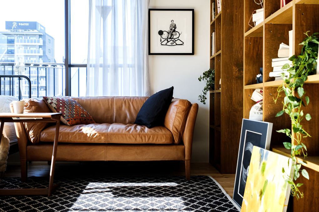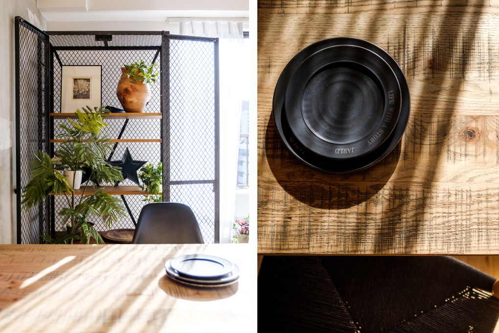 ラグやスチール素材を用いて、コントラストのバランス調整。