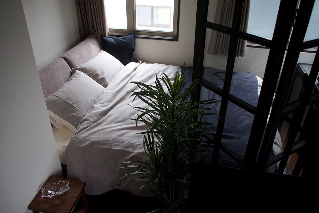 ダイニングからソファーをはさんでリビング、そしてベッドへ徒歩にしてわずか数歩でしかもノンストップですべて完結してしまう空間はそれはそれで心地良い生活感を生むものです。