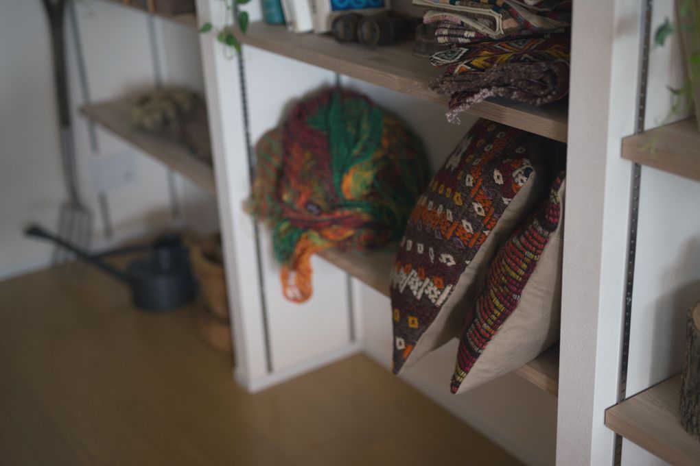 備え付けの棚に集合した道具たちが、出番を待ちながら今日も見守ってくれる。