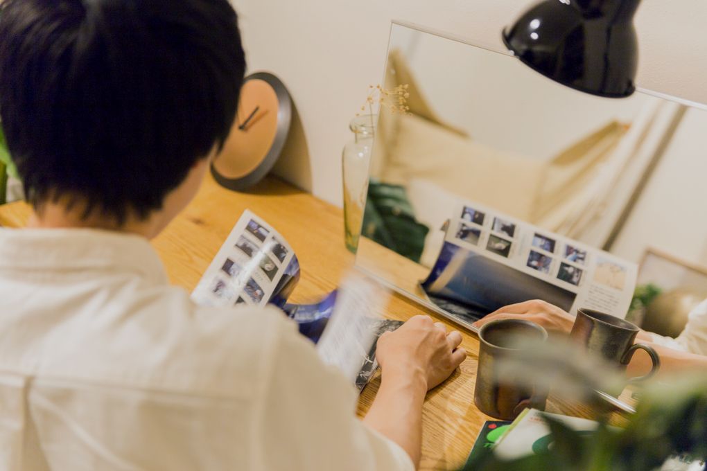 徐々に増やした植物と、彼女の撮った写真を飾ると