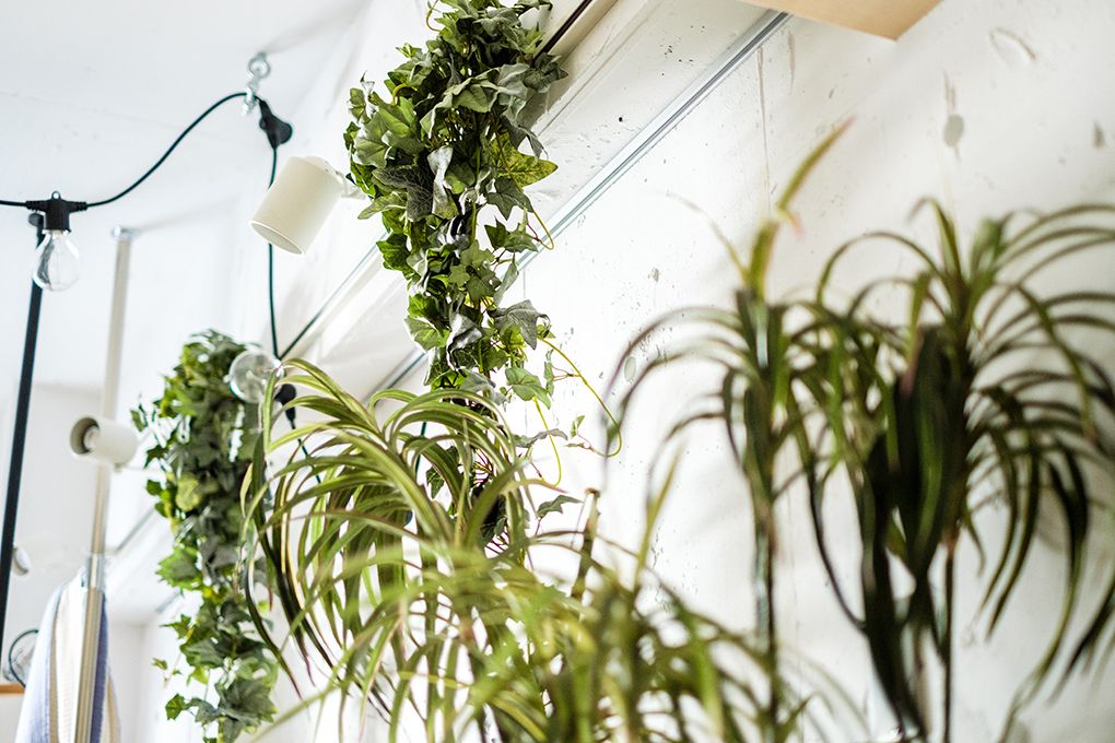 床置きだけではなく、目線の高さやさらに高いところへグリーンを配置すると、
