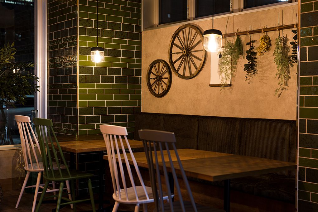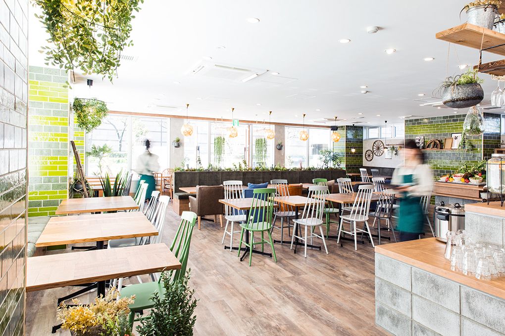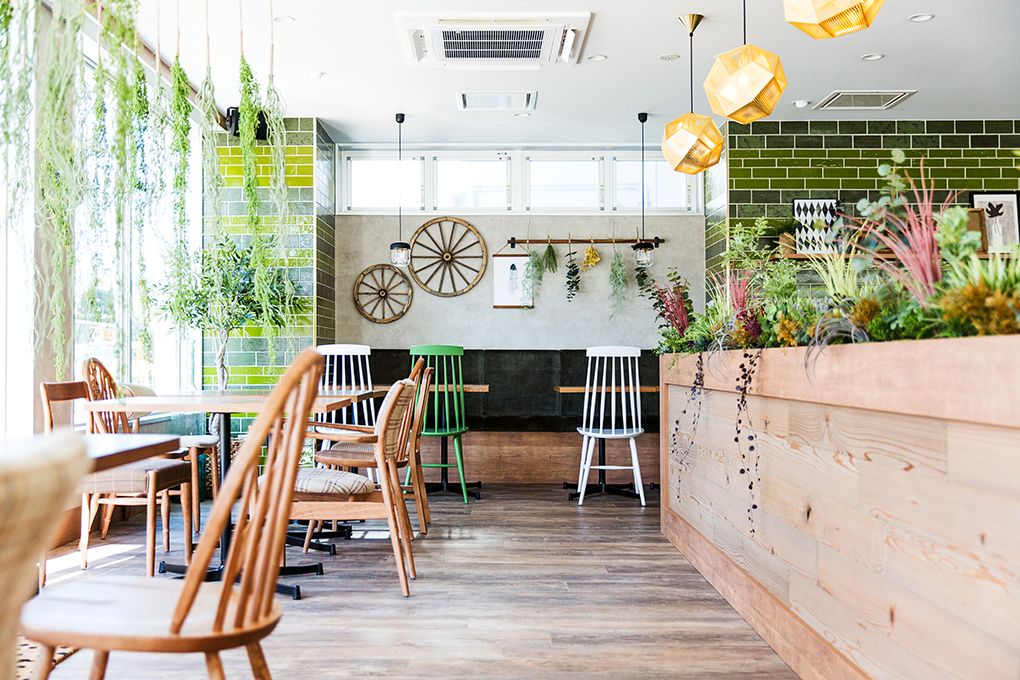 様々な角度からグリーンを取り入れる事で、賑やかさと安らぎ・Farm感を演出しました。