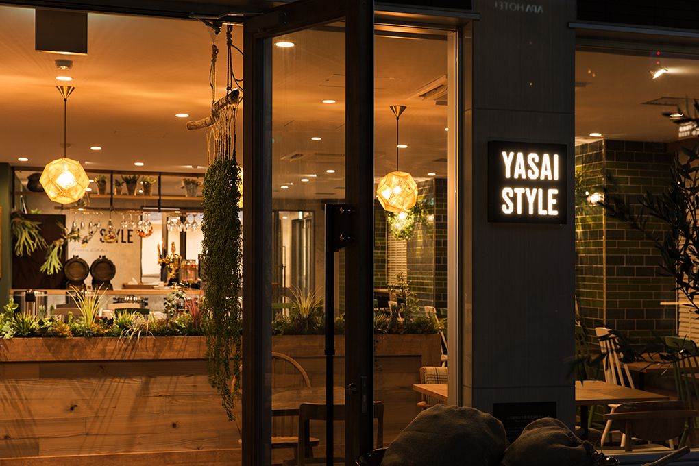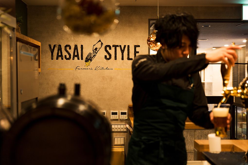 主張しすぎないミニマルサイズのサインに描かれた「YASAI STYLE」の文字も煌々と輝きを増しています。