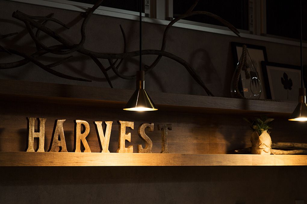 浮き上がるHARVESTの文字。夜が動き出す予感。