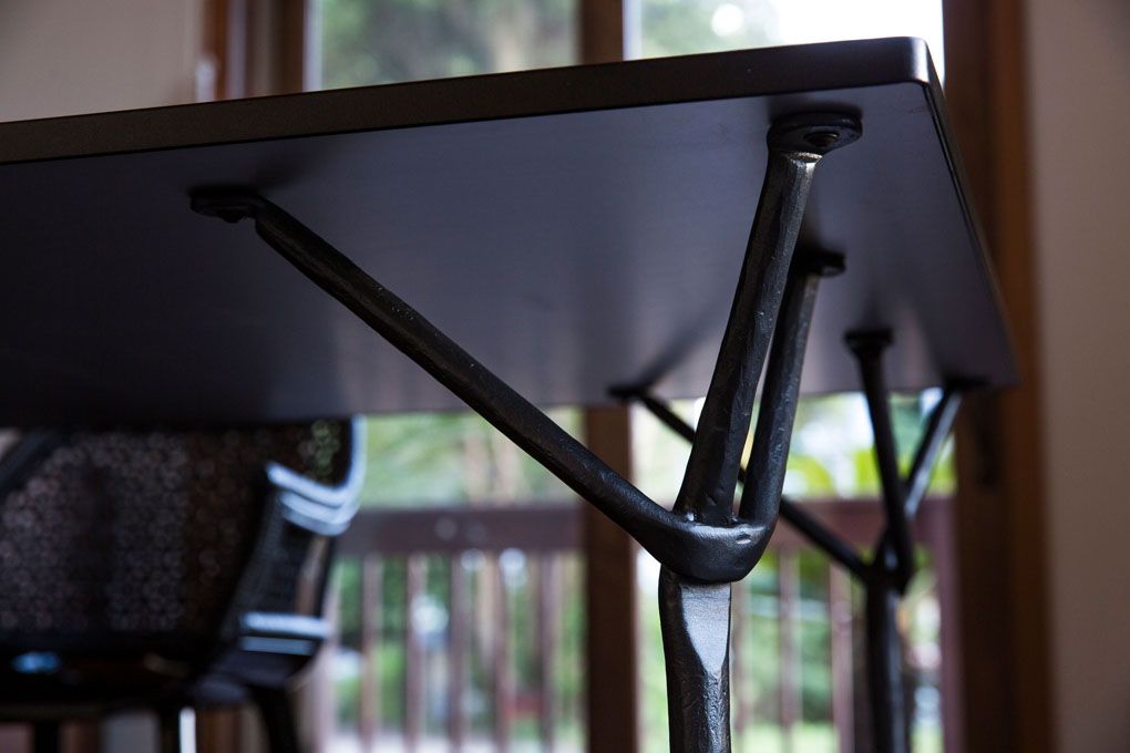 その特徴は何と言っても、シンプルな天板の下に隠れてるアイアンの脚。
