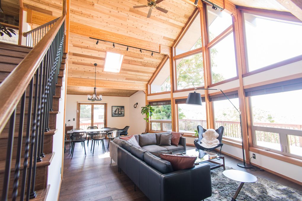 モダンかつ落ち着いた雰囲気のインテリアは、様々な素材がダークトーンで統一され窓一面の絶景がより色濃く映えます。