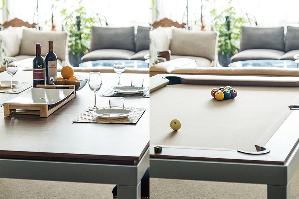 二つの顔をもつテーブルが、大人達の遊び場として活躍してくれます。