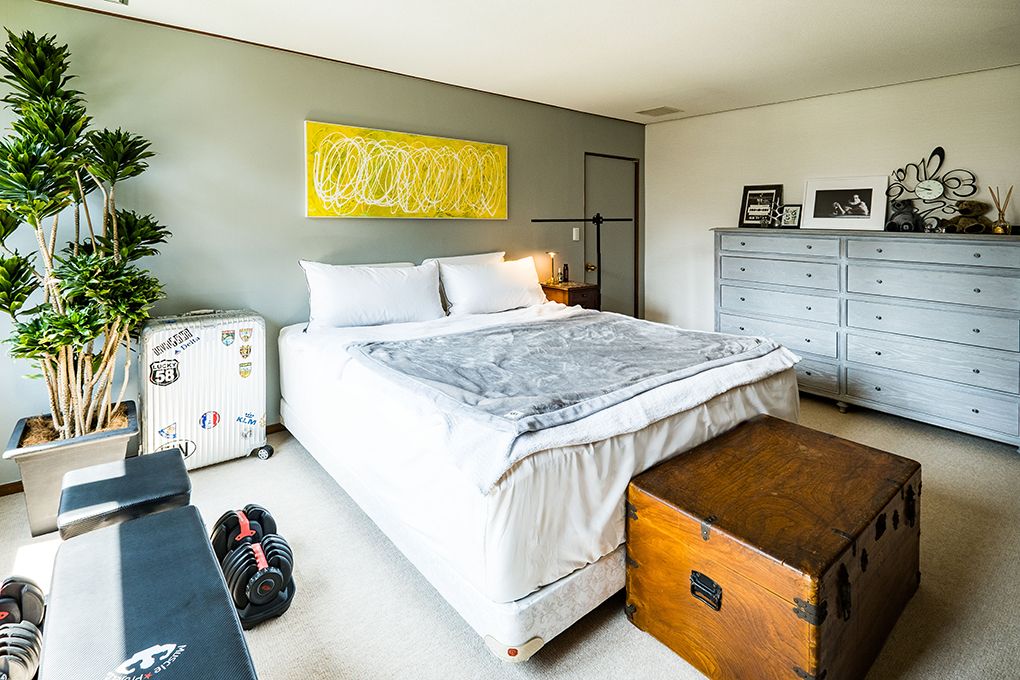 もちろん寝室には、とっておきのお気に入りアイテム達とパワフルに生き抜く為の筋トレアイテムをお忘れなく。