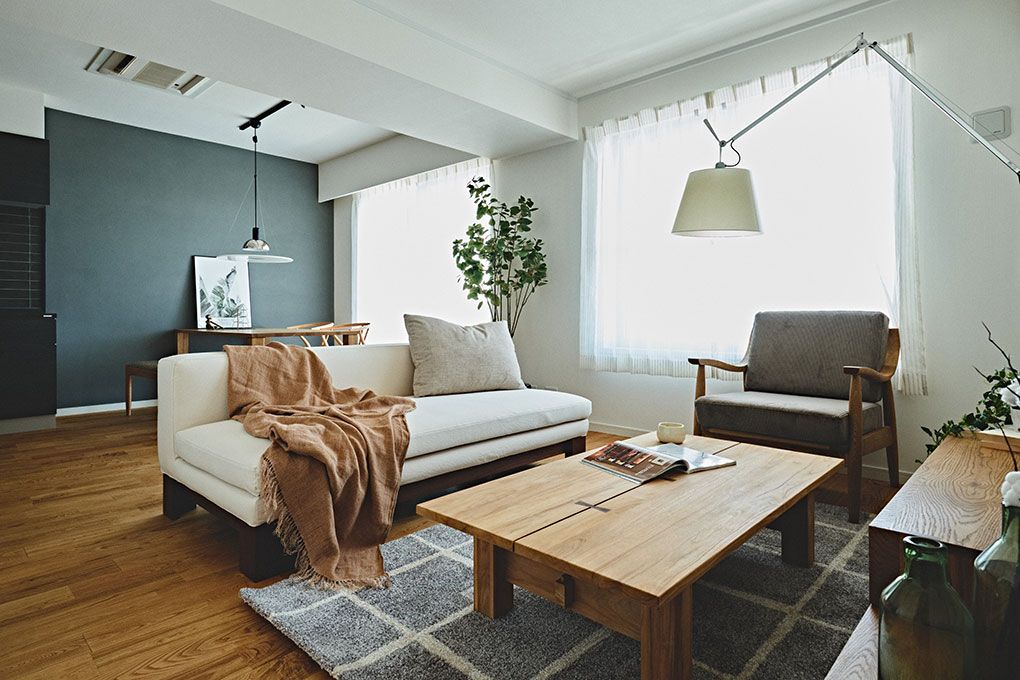 ソファでゴロゴロとリラックスするには、こんなやわらかく和やかな空間づくりがぴったりです。