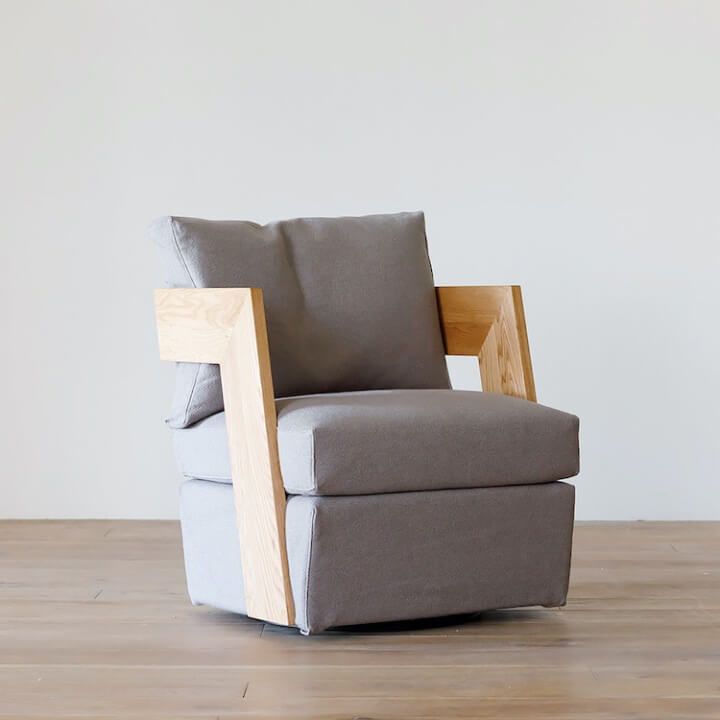 福岡県の家具メーカー〈ヒラシマ〉が手がける「ソリド ラウンドチェア」は、無垢材のシャープなラインと、羽毛たっぷりのやわらかなクッション。そのコントラストが美しいパーソナルチェア。