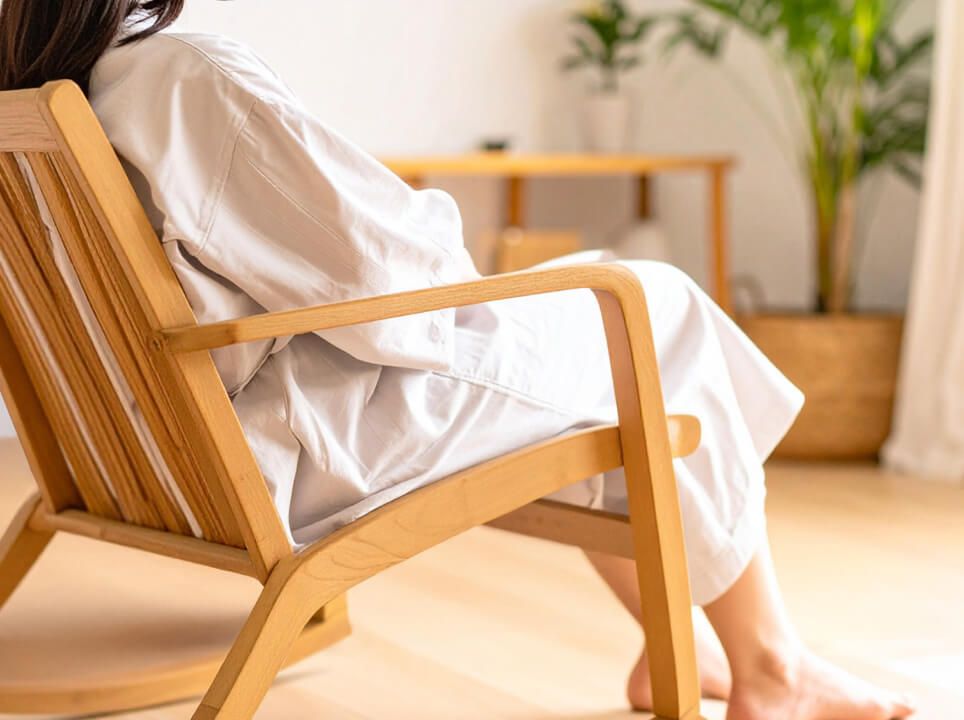 こちらは逆に、背もたれに角度があり、頭までしっかり支えてくれるタイプがおすすめです。ヘッドレスト付きのものや、リクライニング・ロッキング機能があると、より快適に過ごせます。