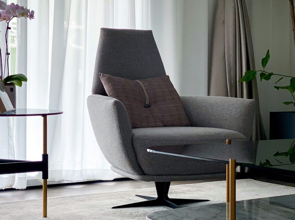 ソファとパーソナルチェアを合わせることで、機能的にもビジュアル的にも、空間の完成度がぐっと上がります。
