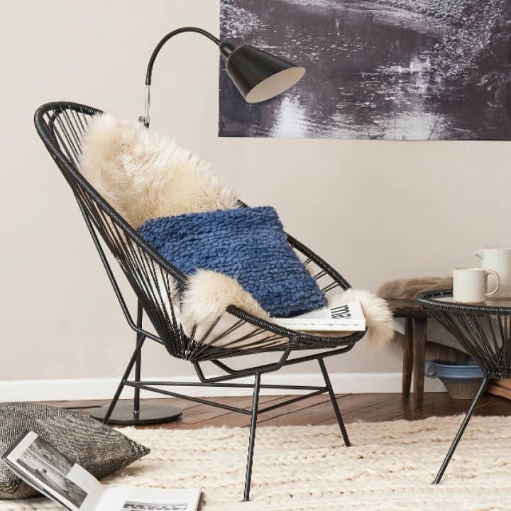 スチール製のフレームにPVCコードを巻きつけた構造で、身体をあずけると柔軟性のあるコードが心地よくフィット。見た目からは想像できないほど快適な掛け心地です。庭やベランダなどのアウトドアシーンはもちろん、室内使用もおすすめです。