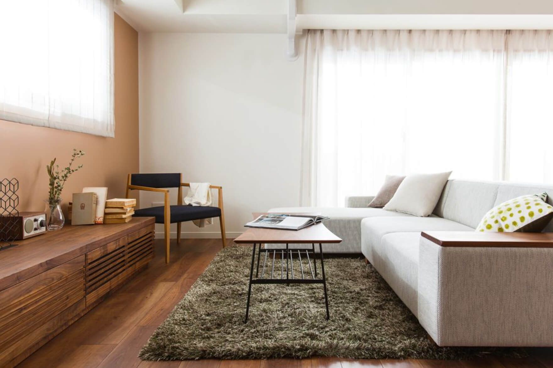 素材やカラーをあえて少し変えてあげると、単調になりがちなリビングがぐっとこなれた印象へ。