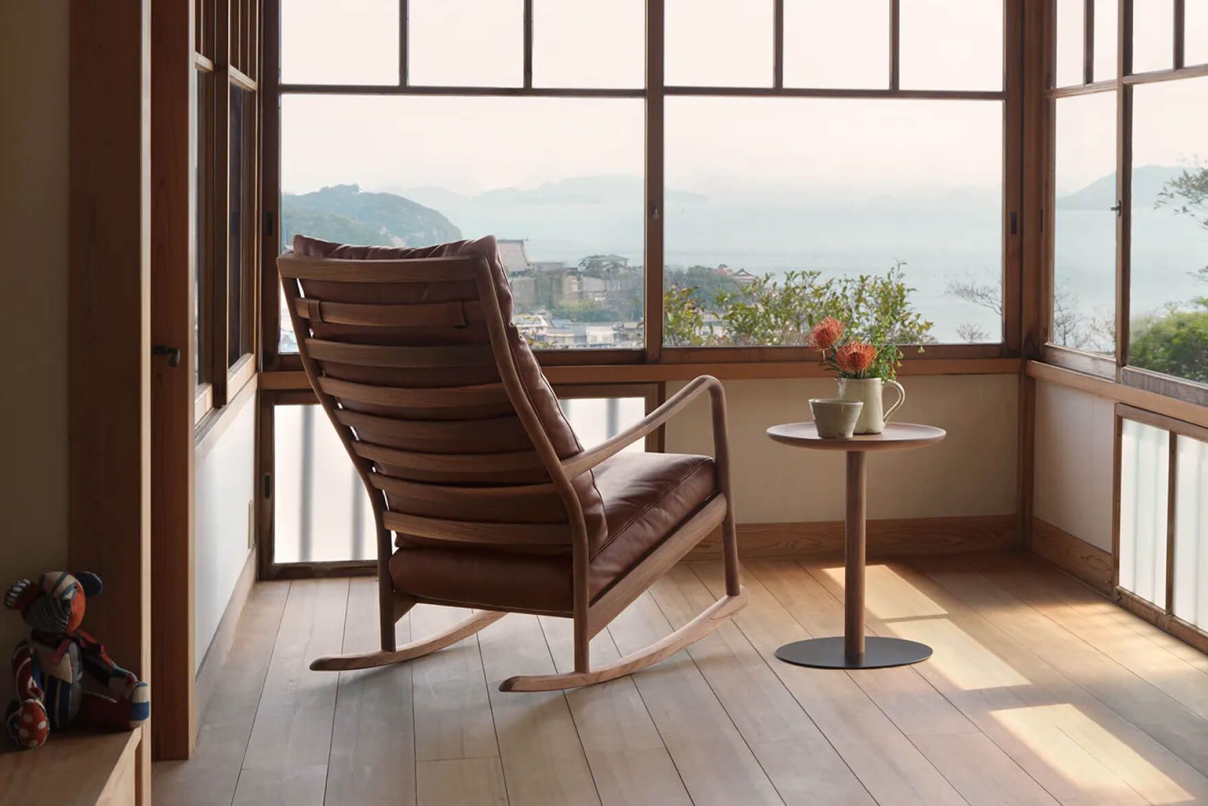 「100年後のアンティーク家具へ」をコンセプトに掲げる〈マスターウォール〉が手がけた、ハイバック仕様のロッキングチェア。