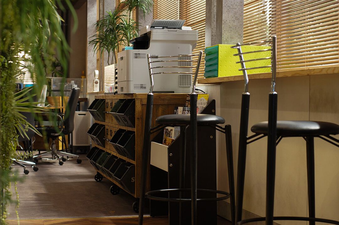全体的にカジュアルでインダストリアルな家具が使われているおしゃれなオフィス。