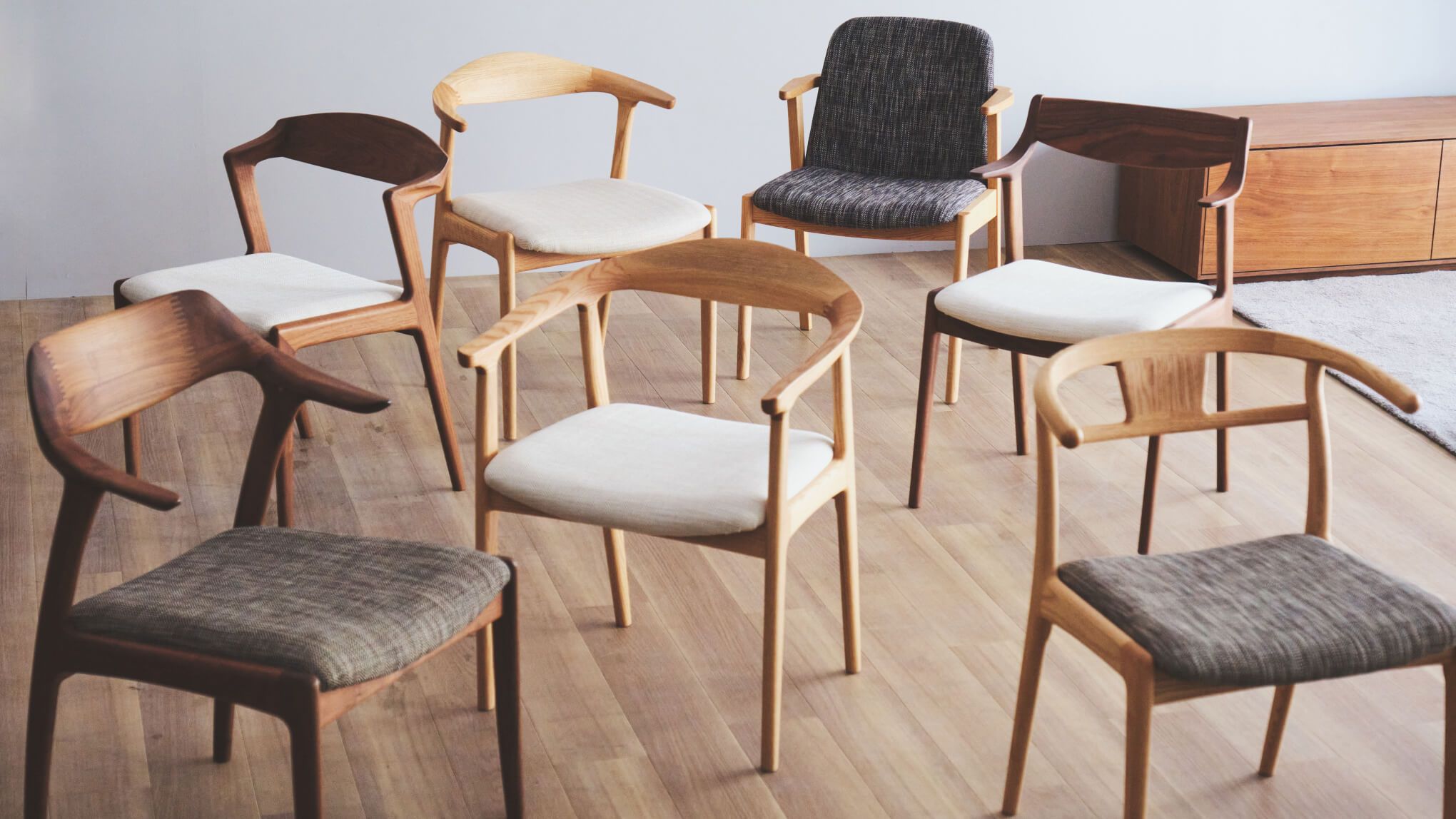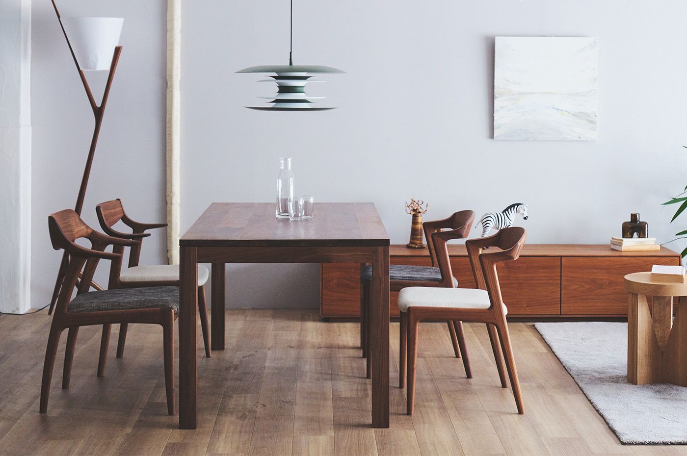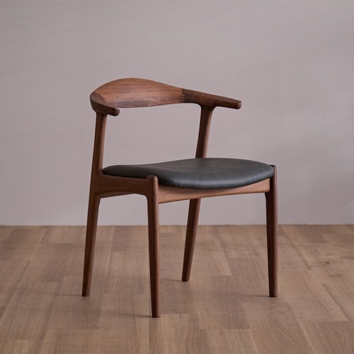 すべての加工を国内の工場で行い、素材に使用されているのはオークやウォールナット、チェリーといった銘木。360°どこから見ても絵になり、職人の手と目で一つ一つ仕上げられているから細部の仕上がりも丁寧。座り心地の良さにも定評があります。