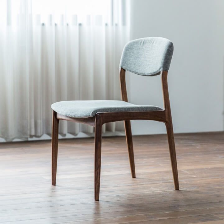 どこから眺めても美しく、柔らかく面取りされたフレームや端正な佇まいに美意識とこだわりを感じる、シキファニチアを代表するダイニングチェアです。