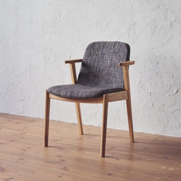 アーム付きでゆっくりとくつろげつつ、セミアームだから椅子への出入りがしやすく機能的。ダイニングテーブルに深くさしこめるので動線も邪魔しません。