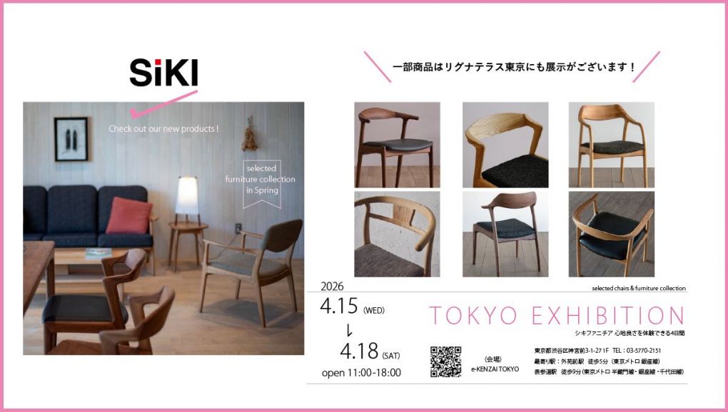 シキファニチアの家具を実際にご体感いただける展示会が、東京で開催されます。