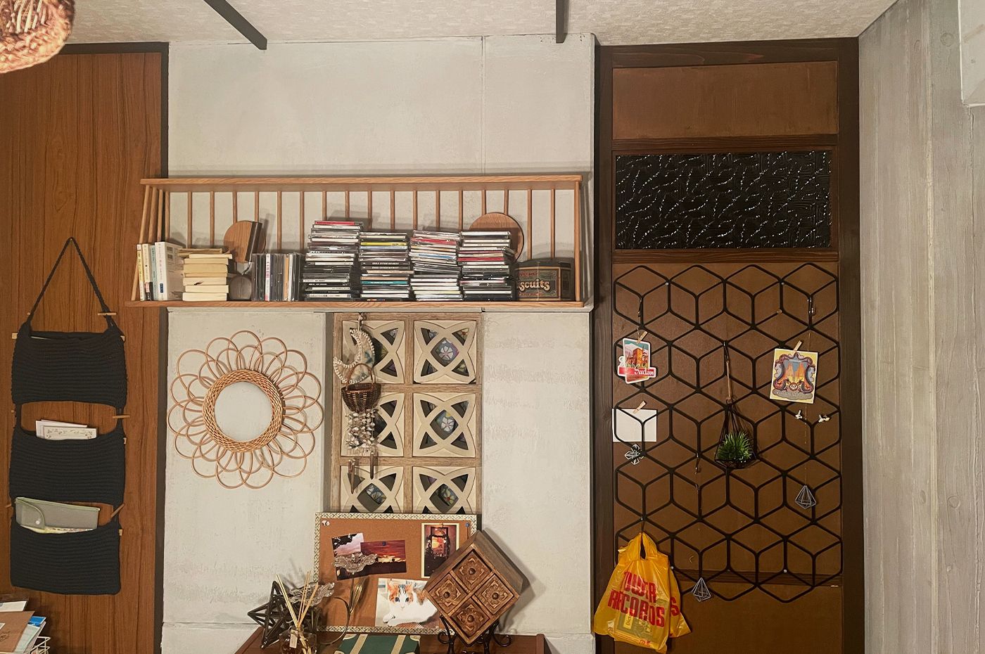 "音楽好き"の主人公が、スピーカーや小物をたくさん飾っている