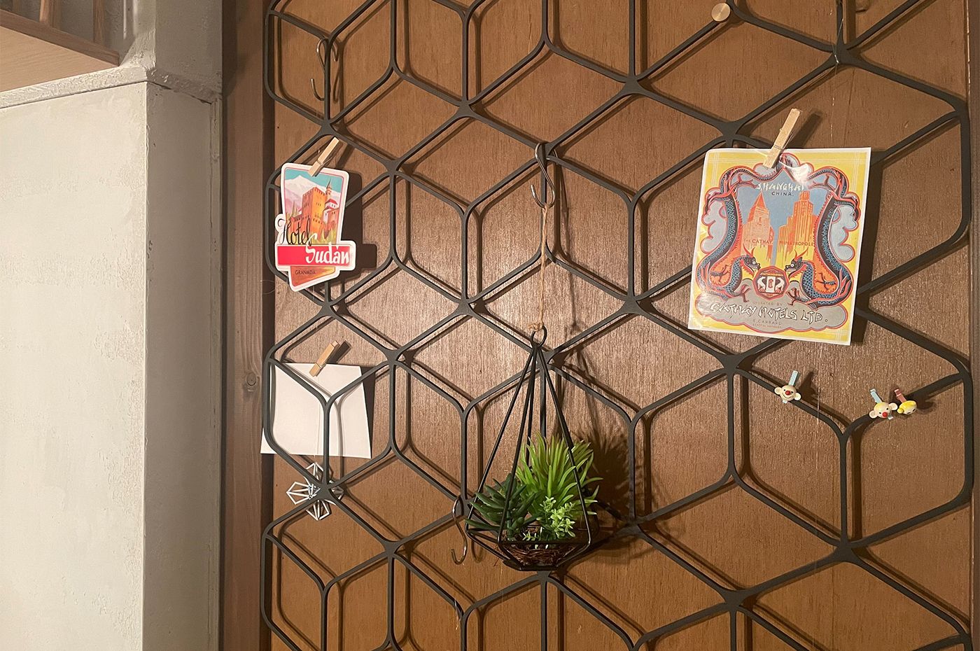 マグネットがくっつくのでポストカードを挟んだり、S字フックで帽子や軽めのカバンをかけておいたり。