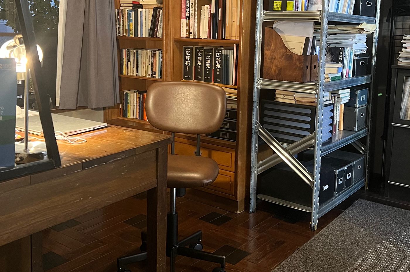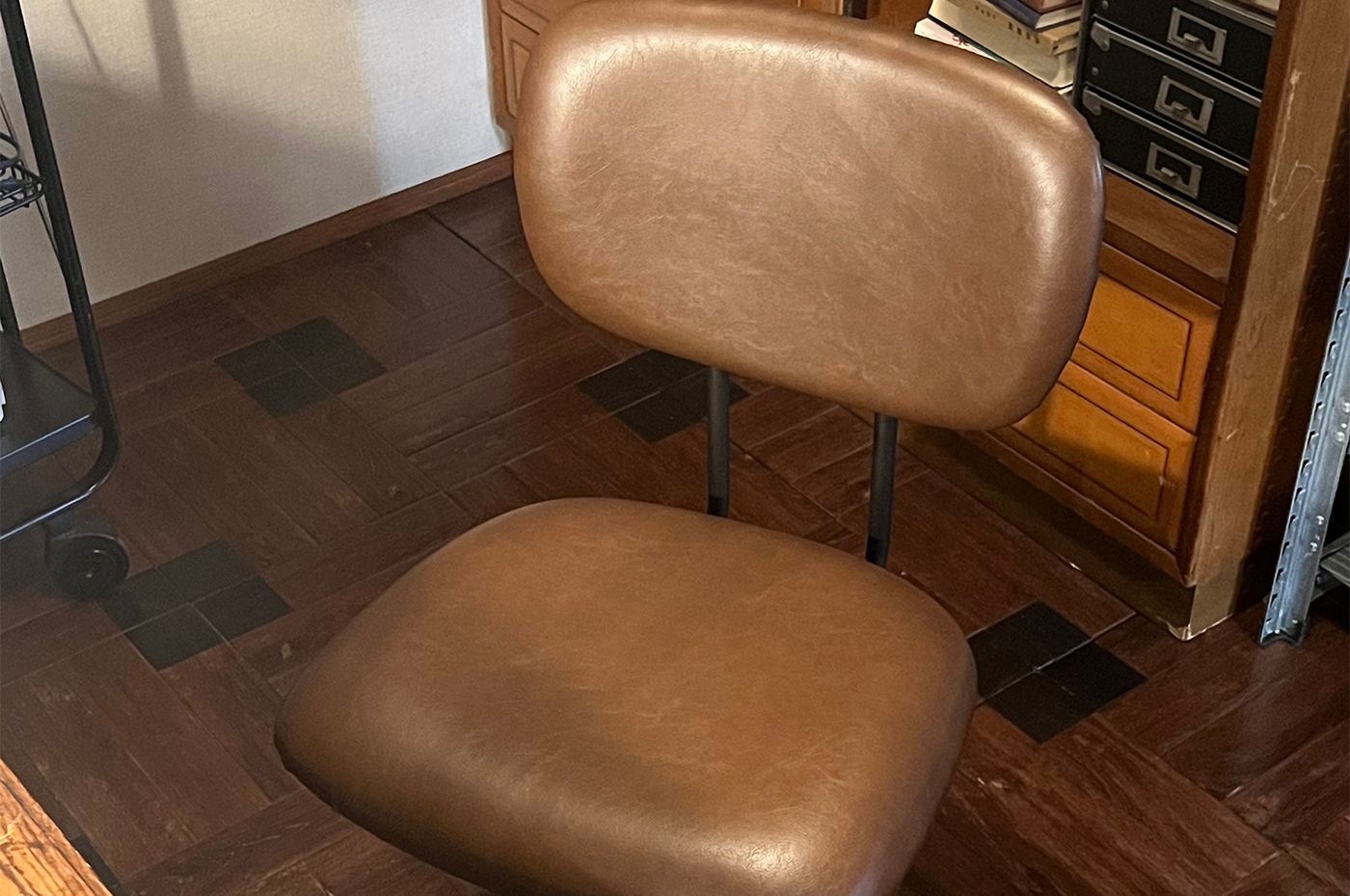 味わい深いレザーの「ペッパーデスクチェア」はキャスター付きで移動が楽々。