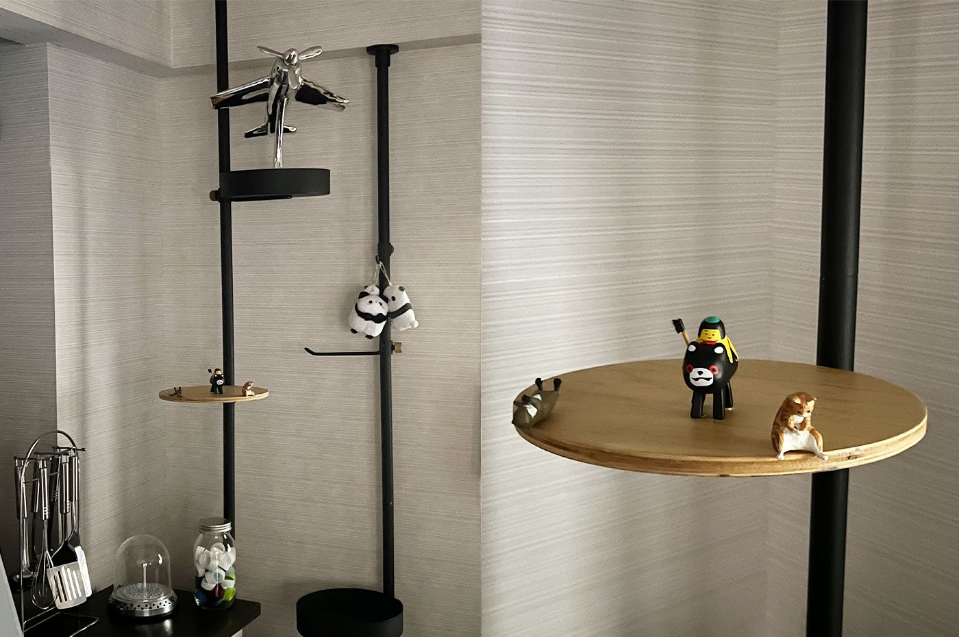 ポールにテーブルなどのパーツをカスタマイズして突っ張るだけなので、スペースを取らないのも◎
