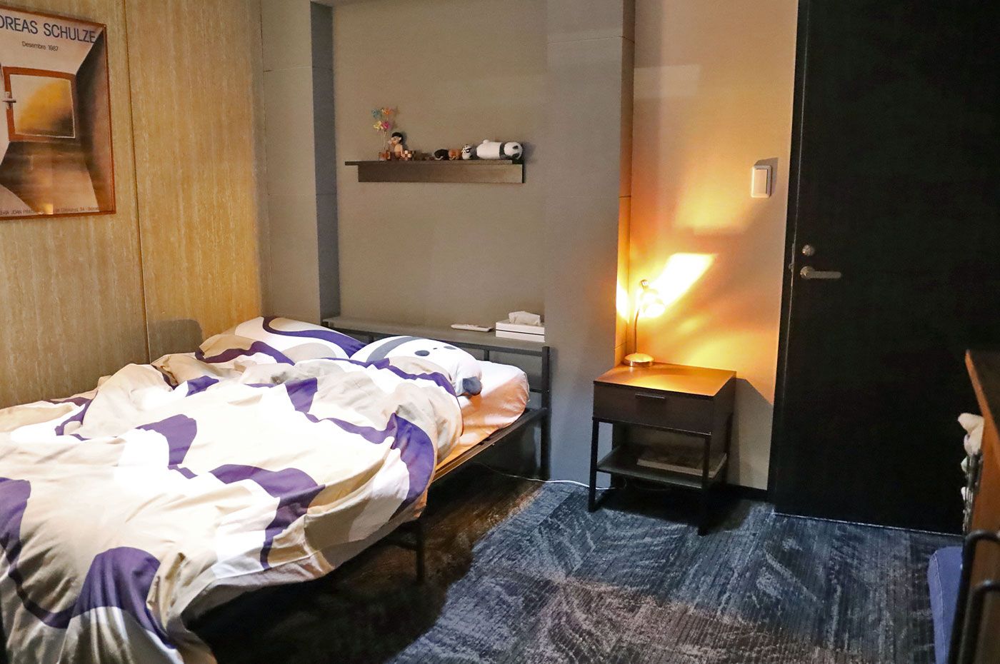 ヘッドボードには無垢材を使用しており、木の素材感を楽しめます。