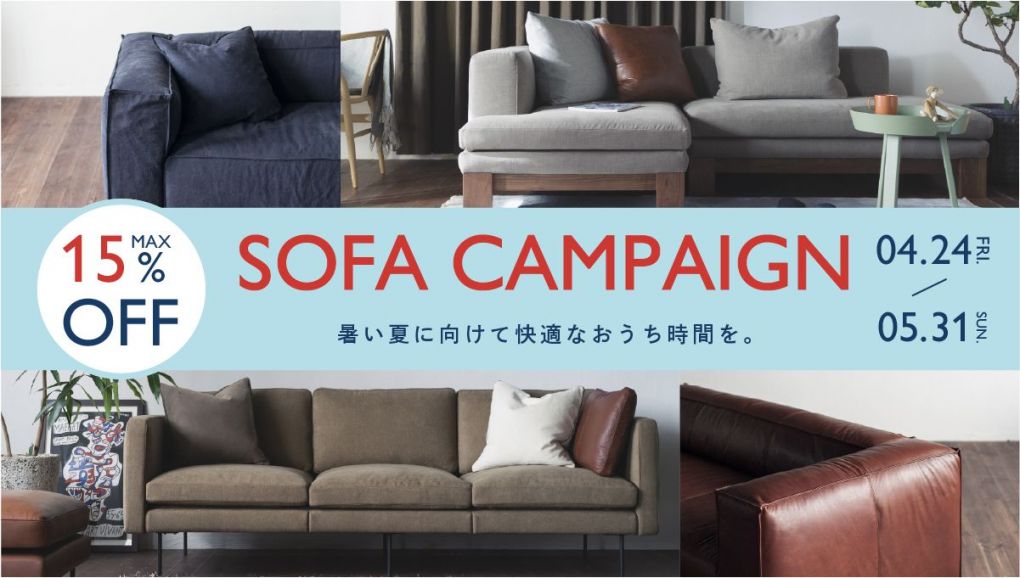 ソファ全品が10%OFFになるキャンペーンを実施中です。