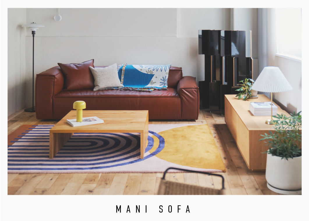 ふっくらとした丸みのあるフォルムの「マニソファ」。その魅力はバリエーションの多さにあります。幅はもちろんのこと、アームの有無、高さ変更、片肘などお部屋やくつろぎ方の好みに合わせて自由に選択できます。