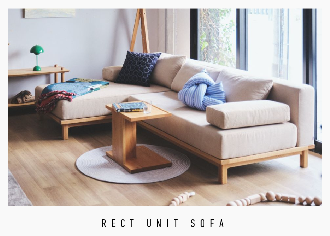 レクトソファはサイズのバリエーションが豊富。コンパクトなお部屋からLD兼用のレイアウト、シェーズロングやオットマンと組み合わせてL字で広々と使うこともできます。