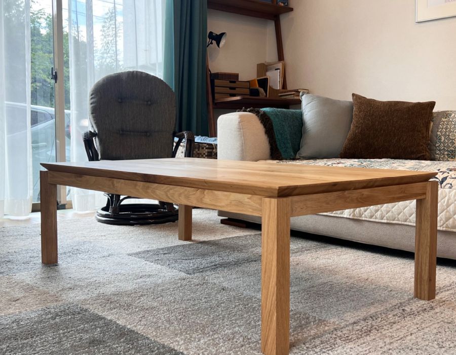 冬はこたつテーブルとして、暖かくなったら布団はしまってリビングテーブルとして。一年中活躍できる、こだわりのこたつテーブルです◎