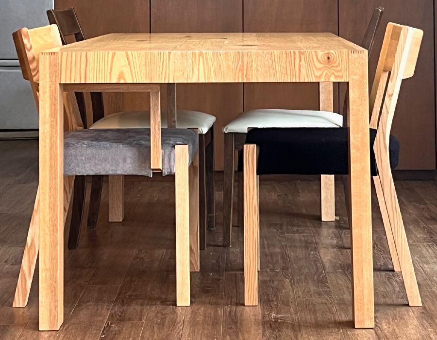 直線的なデザインのテーブルは無駄な装飾が一切ない。まさにシンプル イズ ベストを体現しているダイニングセットです。