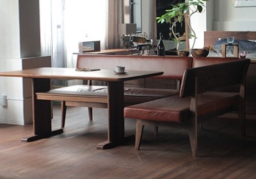 壁付けして置くことができる為レイアウトが簡単で、奥行きを利用すればより広く食事スペースを取ることができます。