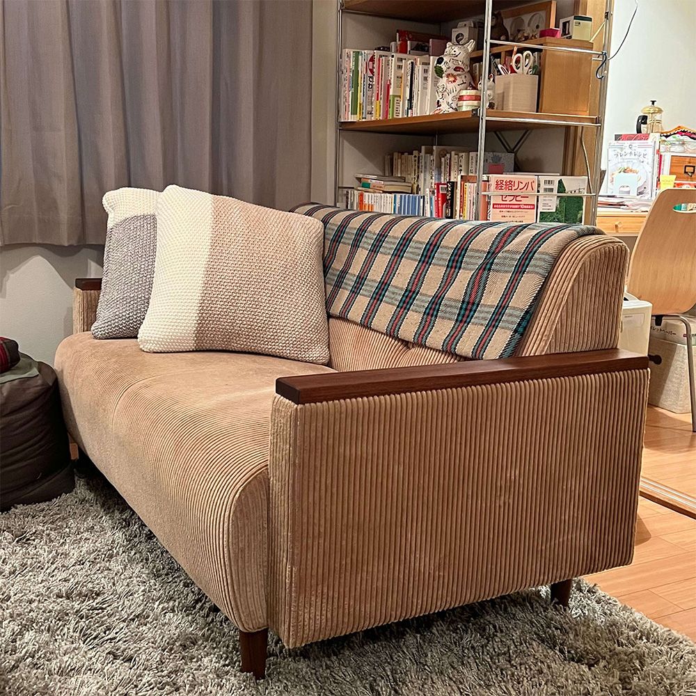 今回は様々な張地の中からコーデュロイを選択。カジュアルな印象のソファに仕上がっています。