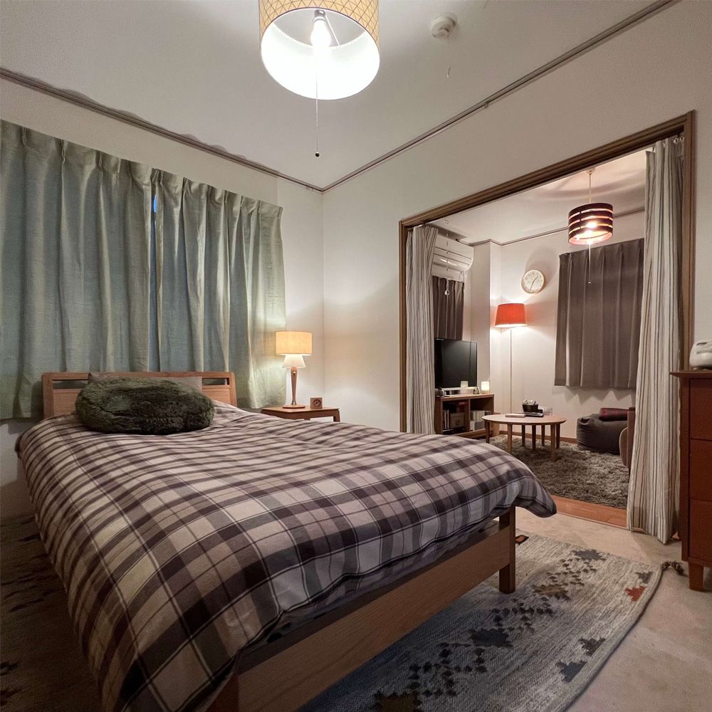 寝室もリビング同様、オーク材の家具中心にレイアウトされています。