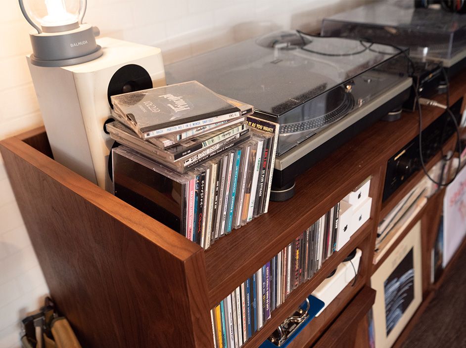 下段ラックの全面はレコードや雑誌を飾ることもできるので、見せる収納としてもお楽しみいただけます。
