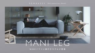 2015年にスタートした、リグナオリジナルブランド「REMBASSY」とそのファーストプロダクトである「MANI」ソファ。その10周年を記念して、MANIソファに脚が加わったニューモデル「MANI LEG」ソファが新たに発売開始となりました!発売以来、多くのお客さまに支持されてきたMANIソファの快適な座り心地はそのままに、ご要望の多かったロボット掃除機に対応したモデルとなっています。