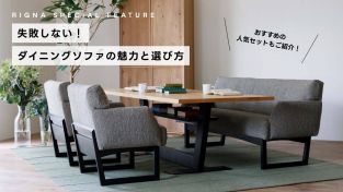 リビングダイニングの新たな選択肢として、近年人気が高まりつつある「ダイニングソファ」。 ダイニングソファとは、ざっくり言えば「食事もできるソファ」のことで、ソファのようにゆったりくつろげつつ、ダイニングテーブルと一緒に使える設計になっているものを指します。 「ダイニングもリビングもちゃんとしたいけど、部屋が狭い・・!」 「食事や団らんをゆっくり楽しめる、居心地の良いダイニングにしたい」 こういったお悩みやご要望、リグナにご来店いただくお客さまからもよくご相談いただくのですが、ダイニングソファはまさにこういったところにバチっとハマるアイテムなんです。 今回はそんな新定番、ダイニングソファの魅力や選び方、おすすめのセットアイテムについてご紹介していきます。
