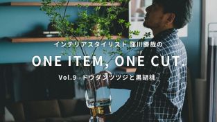 インテリア&プロップスタイリストの窪川勝哉さんが、毎号Rignaのアイテムの中から1アイテムをピックアップ。そのアイテムのまだ見ぬ魅力を引き出す「映え」なワンカットをスタイリングしてもらう連載企画。第9回は、意匠を極限までそぎ落とし、静かな佇まいと豊かな素材感を追求した「ヒツ AVボード」が選ばれました。