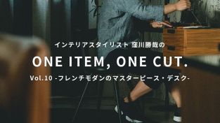 インテリア&プロップスタイリストの窪川勝哉さんが、毎号Rignaのアイテムの中から1アイテムをピックアップ。そのアイテムのまだ見ぬ魅力を引き出す「映え」なワンカットをスタイリングしてもらう連載企画。第10回は、フランスを代表するデザイナーであるピエール ポランの「F031デスク」が選ばれました。