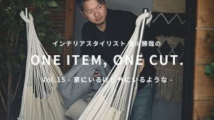 インテリア&プロップスタイリストの窪川勝哉さんが、毎号Rignaのアイテムの中から1アイテムをピックアップ。そのアイテムのまだ見ぬ魅力を引き出す「映え」なワンカットをスタイリングしてもらう連載企画。第15回は、場所を選ばないチェアハンモック「コンフォルタ」です。